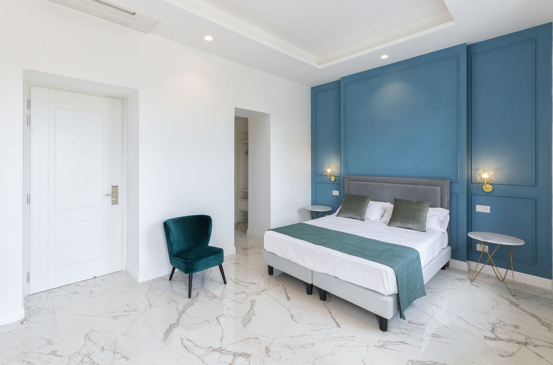 Camera Matrimoniale con VISTA MARE. Dispone di Aria Condizionata, Wifi, TV, Minibar. Arredata in stile moderno. A disposizione dei nostri ospiti: Wifi Gratuito, TV, riscaldamento, minibar. COLAZIONE INCLUSA